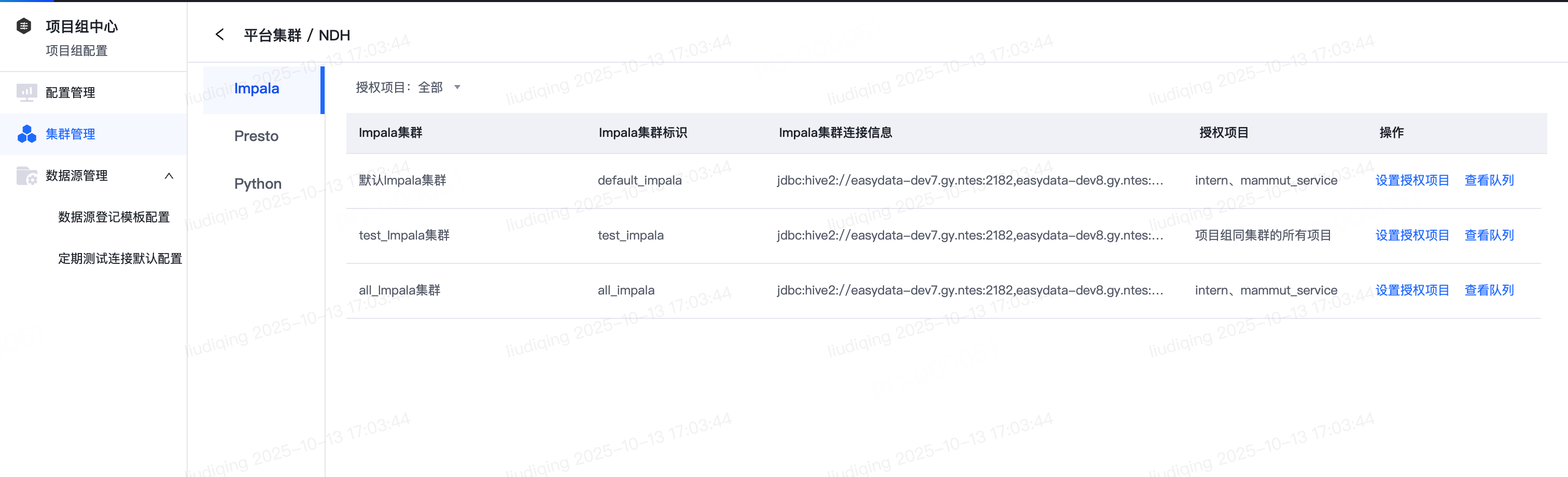 新增功能1.【平台管理+项目组中心】Impala集群支持设置归属项目组及分配授权项目
