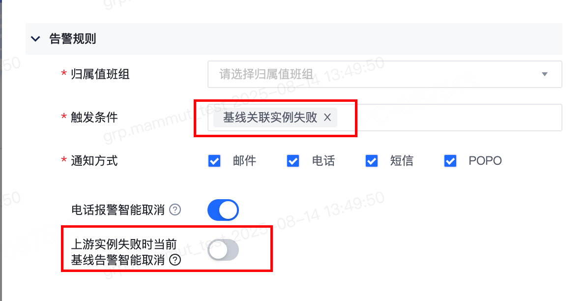 3.基线关联实例失败告警支持智能取消