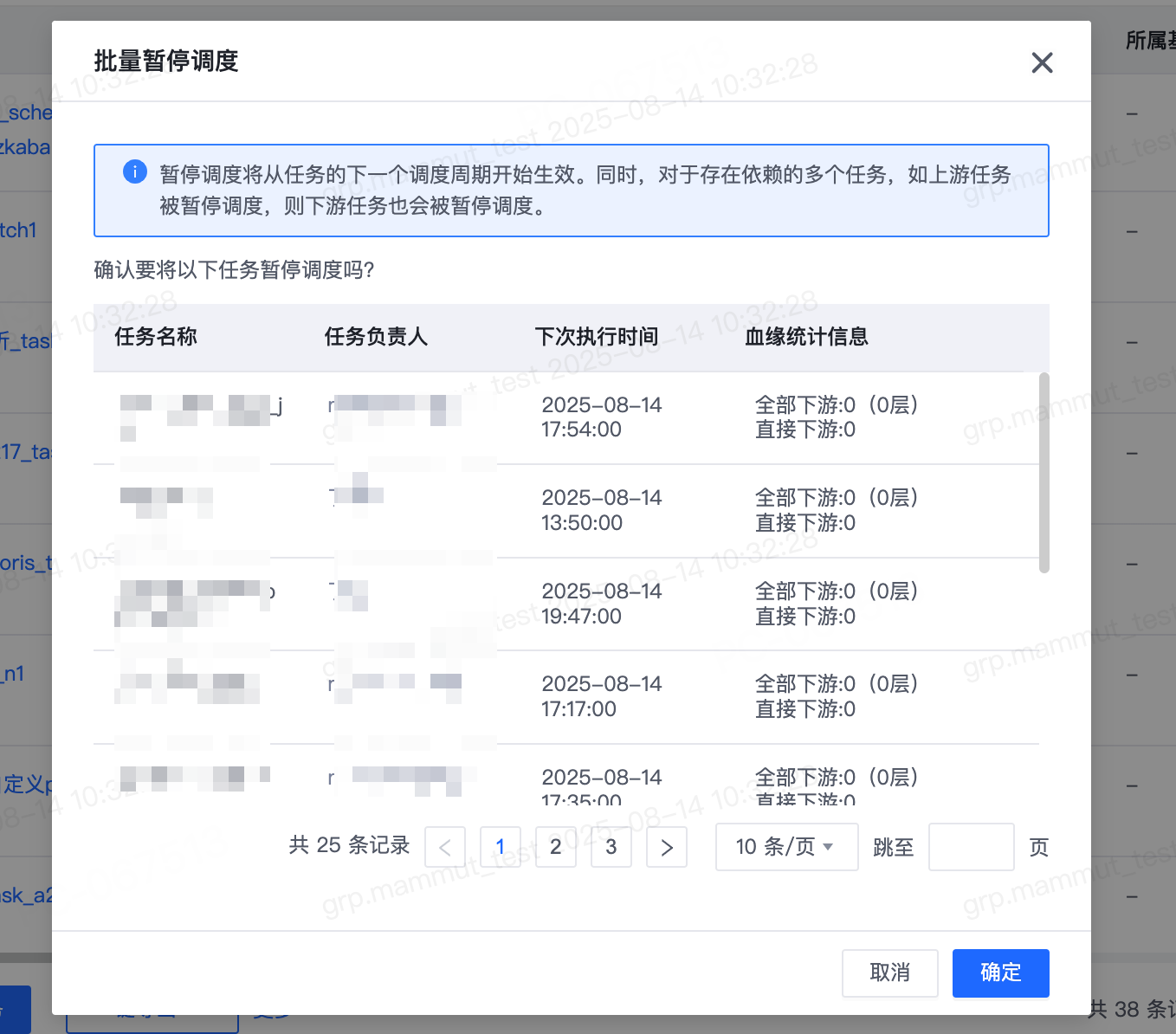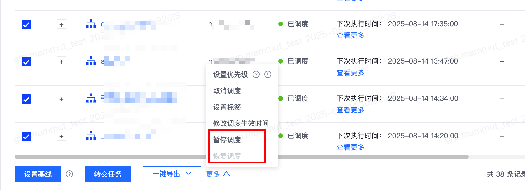 - 在任务列表,批量操作-更多中,新增“暂停调度”和“恢复调度”,用户可以选中多个任务后批量进行暂停调度或恢复调度操作。