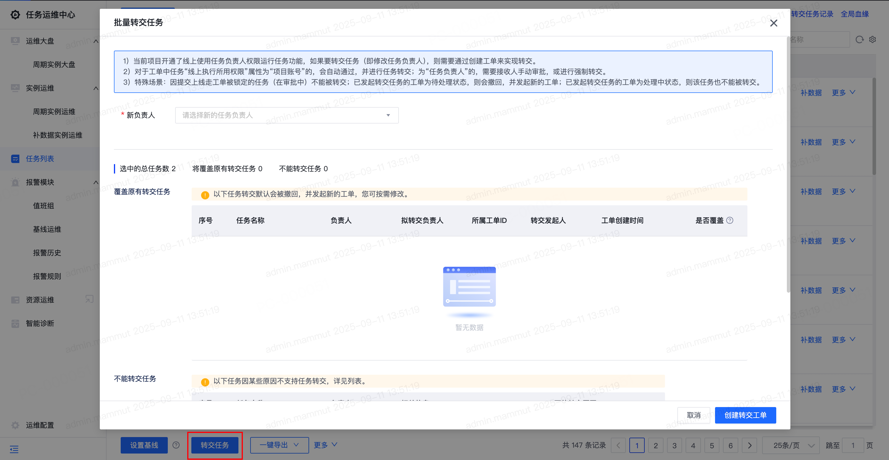 任务列表-转交任务:批量触发创建转交工单