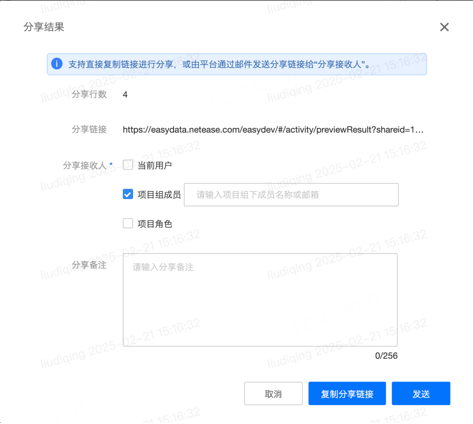 SQL执行完成后,支持复制结果、下载结果文件和分享结果。